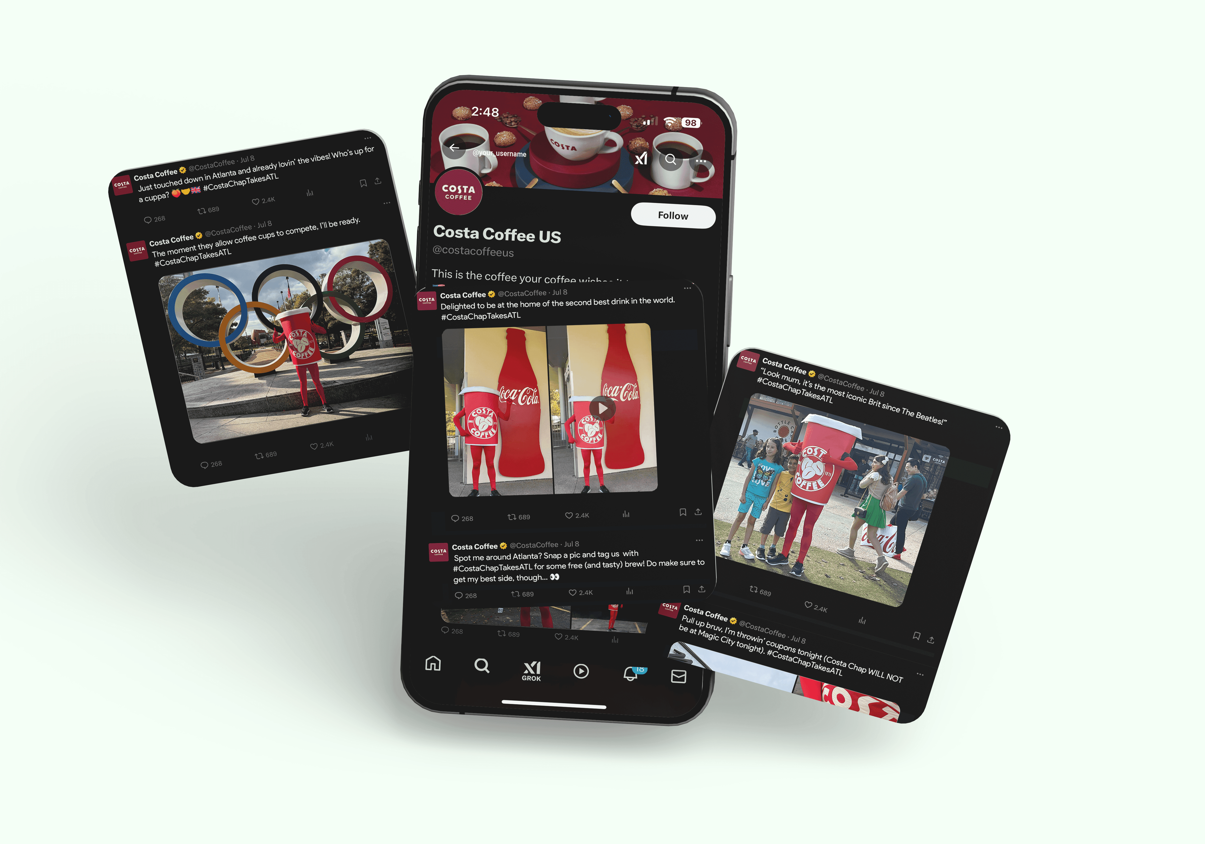 A social campaign to enhance Costa Coffee’s brand recognition in the U.S. before its nationwide expansion. With only six locations in the U.S., five of which are in Atlanta,we showcased Costa’s UK heritage by giving the brand a personality and taking it on tour in the city. TEAM: Ariana Spitaleri, Keelan Ontiveros