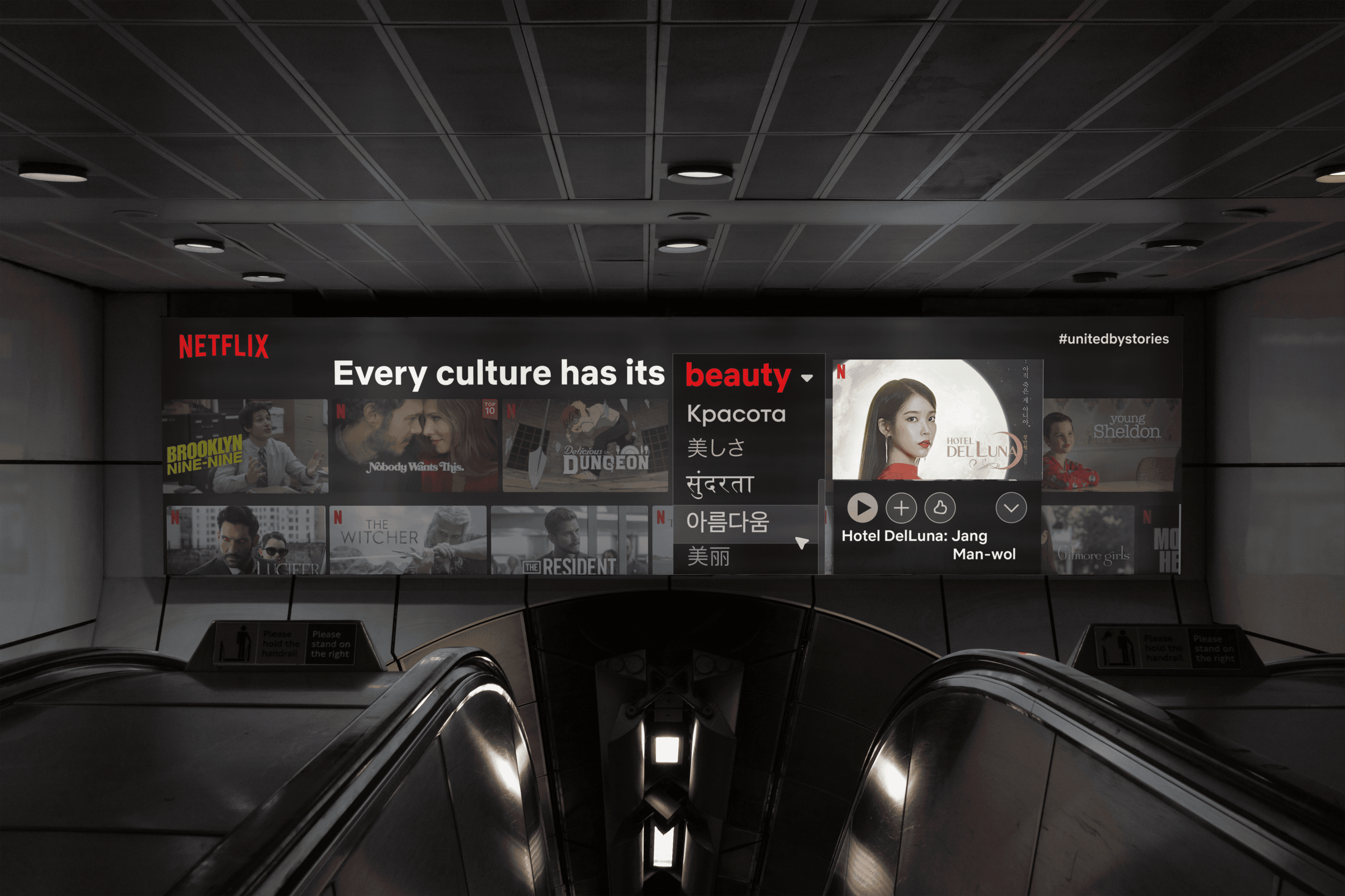 Showcasing Netflix’s diverse range of inclusive content will attract current and future Netflix viewers and help them recognize the value of shared stories. Every culture’s story deepens our connection to the world. TEAM: Martyn Rhee, Mengyu Wang
